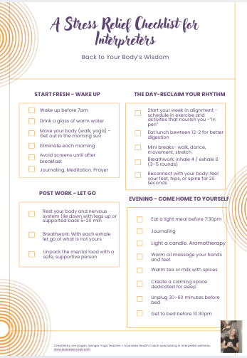 This checklist was created specifically for interpreters to remind you of those daily rituals to reduce and keep stress from accumulating.
